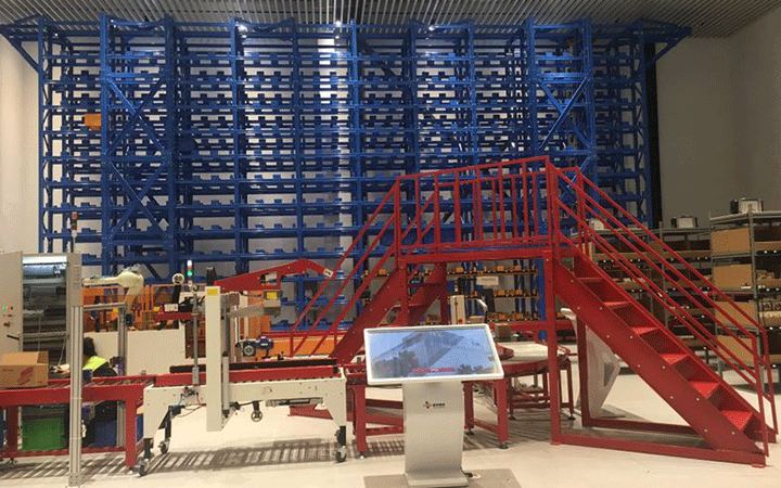 智能立體倉庫貨架通常是組合式鋼結構的建筑物或結構體,貨架內是標準尺寸的貨位空間,巷道堆垛起重機是整個自動化立體倉庫的核心設備,通過手動操作,半自動操作或全自動操作,穿行于巷道之間的巷道中,出入庫口利用各種輸送機或AGV/RGV等自行運動小車對接巷道堆垛機,實現把貨物從一處搬運到另一處,完成存、取貨的工作。