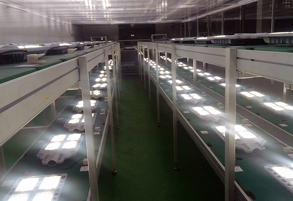 檢測線主要是由LED光電色測試系統、大型分布式光度計、震動試驗臺、鹽務試驗機、冷熱沖擊試驗箱、噴淋防水測試系統、熱管理分析系統組成,可做色溫、電流、電壓、效率、腐蝕性、防護等級、散熱性能等在線檢測。