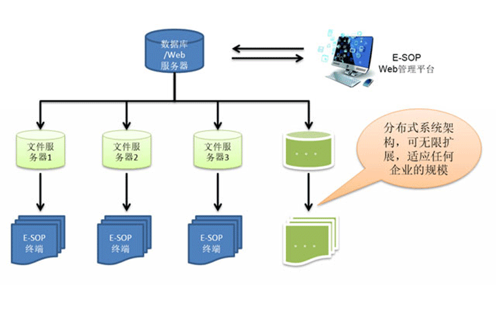 分布式的系統架構和可擴展的文件服務器體系讓匯興智造E-SOP適應不同大小的企業,從幾十個工位到幾萬個工位,任您搭配。