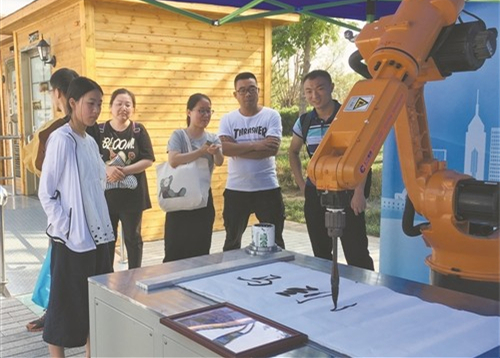嘉賓觀看機(jī)器人書法表演