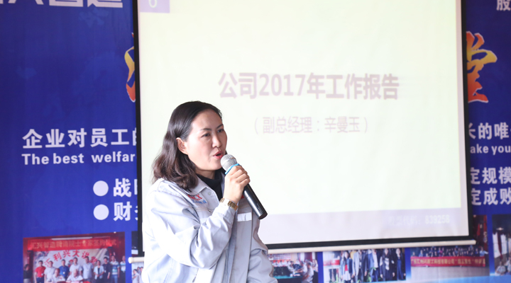 匯興智造副總經(jīng)理辛曼玉以一句“2017,您幸福嗎?”開啟大會(huì)的第六項(xiàng)議程,作2017年年度工作報(bào)告。辛副總說:“在2017年,匯興智造實(shí)現(xiàn)了16年來都沒有實(shí)現(xiàn)的銷售業(yè)績;成立了研究院、技術(shù)研究中心等研發(fā)機(jī)構(gòu),公司的研發(fā)能力得到提高;調(diào)整了產(chǎn)品結(jié)構(gòu),拓展了行業(yè)范圍,并且守護(hù)住了傳統(tǒng)行業(yè),夯實(shí)了業(yè)績;實(shí)現(xiàn)了配件事業(yè)的業(yè)績倍增,取得喜人成績;加強(qiáng)了人力資源建設(shè),老員工在進(jìn)步,能力在提升,而高學(xué)歷、高層次員工的加盟,讓匯興智造如虎添翼。這一年,雖然我們經(jīng)歷了困難、挫折,但取得的成績是驕人的。匯興智造在往前走,往上走,我們?cè)谏掀碌倪^程中,會(huì)氣喘,會(huì)腿酸,很累,但當(dāng)我們爬上山頂?shù)臅r(shí)候,那種‘會(huì)當(dāng)凌絕頂,一覽眾山小’的豪情和喜悅卻是無法比擬的。所以,如果有人問:2017,您幸福嗎?我會(huì)回答:我很幸福!”