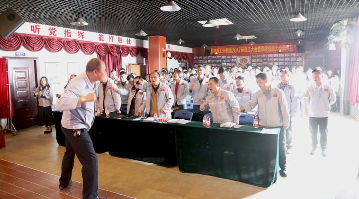 “為夢(mèng)想沖刺,我是匯興智造的一名忠誠戰(zhàn)士,殺!殺!殺!”,震天喊聲響徹會(huì)場(chǎng),匯興人殺掉困惑,殺掉不妥,殺掉阻礙,挺胸抬頭,勇往直前。“雄關(guān)漫道真如鐵,而今邁步從頭越”,2017已不可追,2018正等著匯興智造再創(chuàng)佳績。