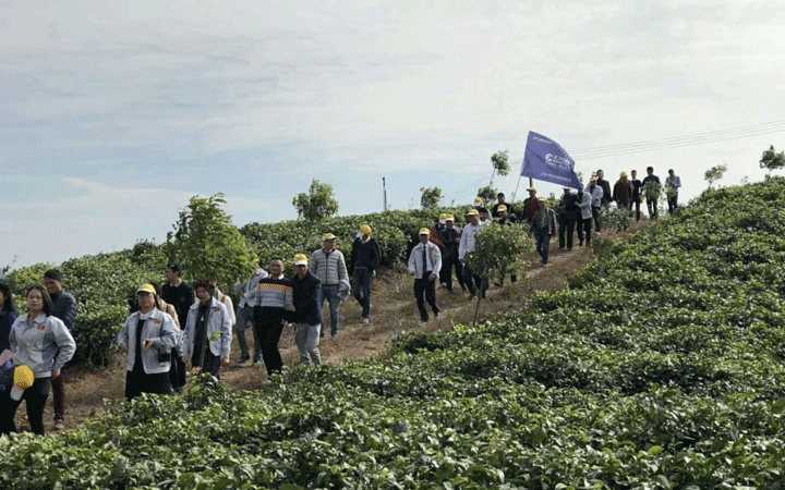 英德古稱英州,以生產紅茶著稱于世,是中國著名茶鄉。旅途第一站:英德茶園。茶園占地面積極廣,陽光里,微風拂過,一片碧波蕩漾,空氣中彌漫著淡淡的清香?!皦粝胫谩钡膱F隊成員們行走其間,心曠神怡。茶園主人耐心地給大伙兒介紹茶葉的制作過程:采摘、萎凋、揉捻、發酵、干燥等。如今的茶葉不再是純手工制作,每一個環節都由相應的設備操作??吹綑C器設備,大伙兒就忍不住向茶園主人獻計:建立一套自動化流水生產線。匯興智造的精英們啊,走到哪兒,都能發掘商機,旅途也是夢想的征程,不忘初心,攜夢前行。