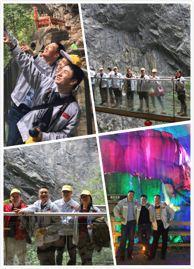 洞天仙境內,還有一景——懸空玻璃棧道,懸空洞內絕壁上高達百米。沿著石梯攀上棧道石臺,更能360度欣賞洞內千變萬化的奇石,“夢想之旅”的團隊成員們走在棧道上,沒有感到步步驚心,而是豪情萬丈,欲與天公試比高。