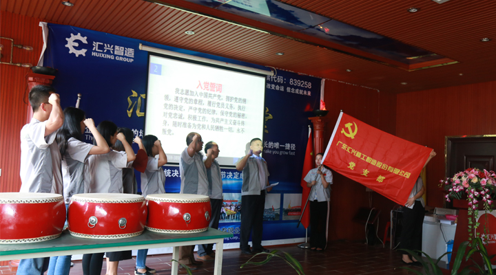 在大會上,匯興智造黨支部全體黨員上臺宣誓,重溫《入黨誓詞》,由匯興智造總工程師許光輝教授領誓,其余黨員們跟誓。在這莊嚴神圣的時刻,全體黨員表達了對中國共產黨的忠誠和信念。