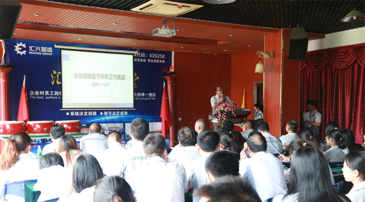 最后,由鐘輝董事長作會議總結及下半年的工作展望。回首上半年,經過全體匯興人的共同努力,匯興智造的業績趕超去年一年,并再次交出了亮眼的成績單,以“優等生”的身份成功晉級到新三板的創新層,這對公司未來的發展,特別是沖刺更高的資本巿場有著重要而深遠的意義。作為植根于大嶺山的本土民營企業,十七年來勤勤勉勉,絲毫不曾懈怠,也感恩大嶺山鎮這片熱土和好的營商環境,眾多領導干部、學者專家多次蒞臨匯興智造參觀調研和指導,給匯興智造的發展建言獻策,增光添彩。匯興智造作為大嶺山鎮市級“倍增計劃”試點企業,也是東莞市知識產權重點保護企業,新近又被獲評為“2016年度廣東省守合同重信用單位”。今年五月份,企業倍增辦順勢成立,匯興智造力爭在兩年內,狠抓業績,推動企業實現規模倍增、效益倍增、納稅倍增,一切以結果為導向,所有匯興人定以鐵一般的信仰,鐵一般的信念,鐵一般的紀律,鐵一般的擔當、朝著既定的目標奮勇前進。