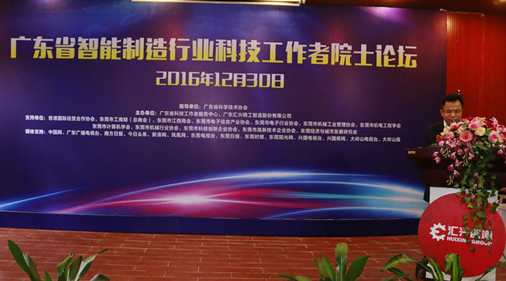 2016年12月30日上午,由廣東省科學技術協會指導、廣東省科技工作者服務中心和廣東匯興精工智造股份有限公司(股票代碼:839258)共同舉辦的“廣東省智能制造行業科技工作者院士論壇”在匯興智造東莞總部隆重舉行。中國工程院院士孫玉、廣東省科學技術協會副主席馮日光、廣東省科技工作者服務中心主任廖仕明、東莞市科學技術協會副主席許為豪、東莞市大嶺山鎮副鎮長蔡容穩、東莞職業技術學院計算機系主任胡選子、江西理工大學機電工程學院書記劉政、副院長劉祚時、東莞理工學院原副書記王江水、東莞理工學院原副校長鄒小平、江西省興國縣委常委李明海、武警126師原政委趙燕清、意大利智能制造工程中心顧問高級工程師艾德羅教授、匯興智造董事長鐘輝、東莞職業技術學院副教授辛曼玉,以及來自全國各地的優秀的智能制造行業代表200多人參加了論壇。