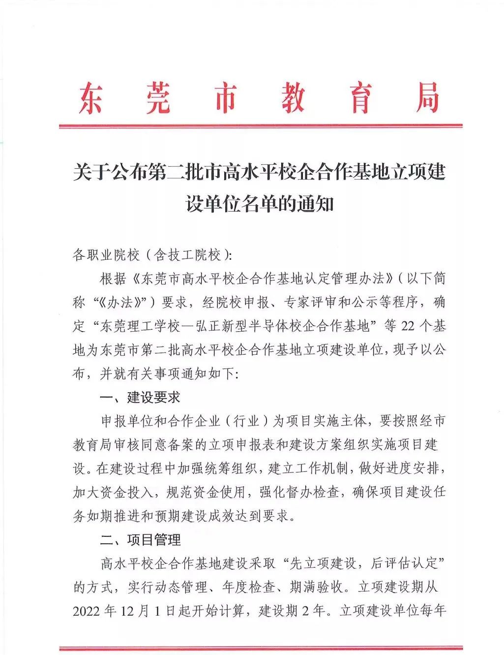 市教育局納入為東莞市第二批高水平校企合作基地立項建設(shè)單位