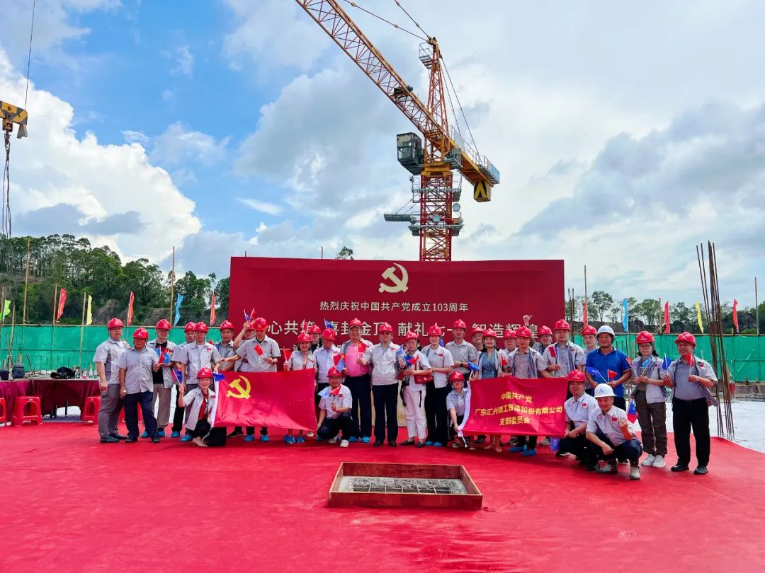 2024年7月1日是中國共產黨成立103周年紀念日,在這舉國歡慶的日子里,匯興智造舉辦了匯興智能設備制造增資擴產項目主樓封頂儀式,標志著項目建設取得階段性勝利,以實業報國獻禮黨慶!